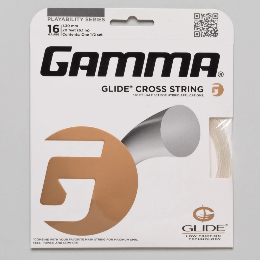 Gamma Glide Cross String (20 Half Set for Hybrid) allows the main string to glide further and faster along the cross strings to store and return more energy to the ball. Much faster snap back helps generate radically higher spin with more power, feel and comfort. Create your own ultimate hybrid by coming Glide with your favorite main strings.
