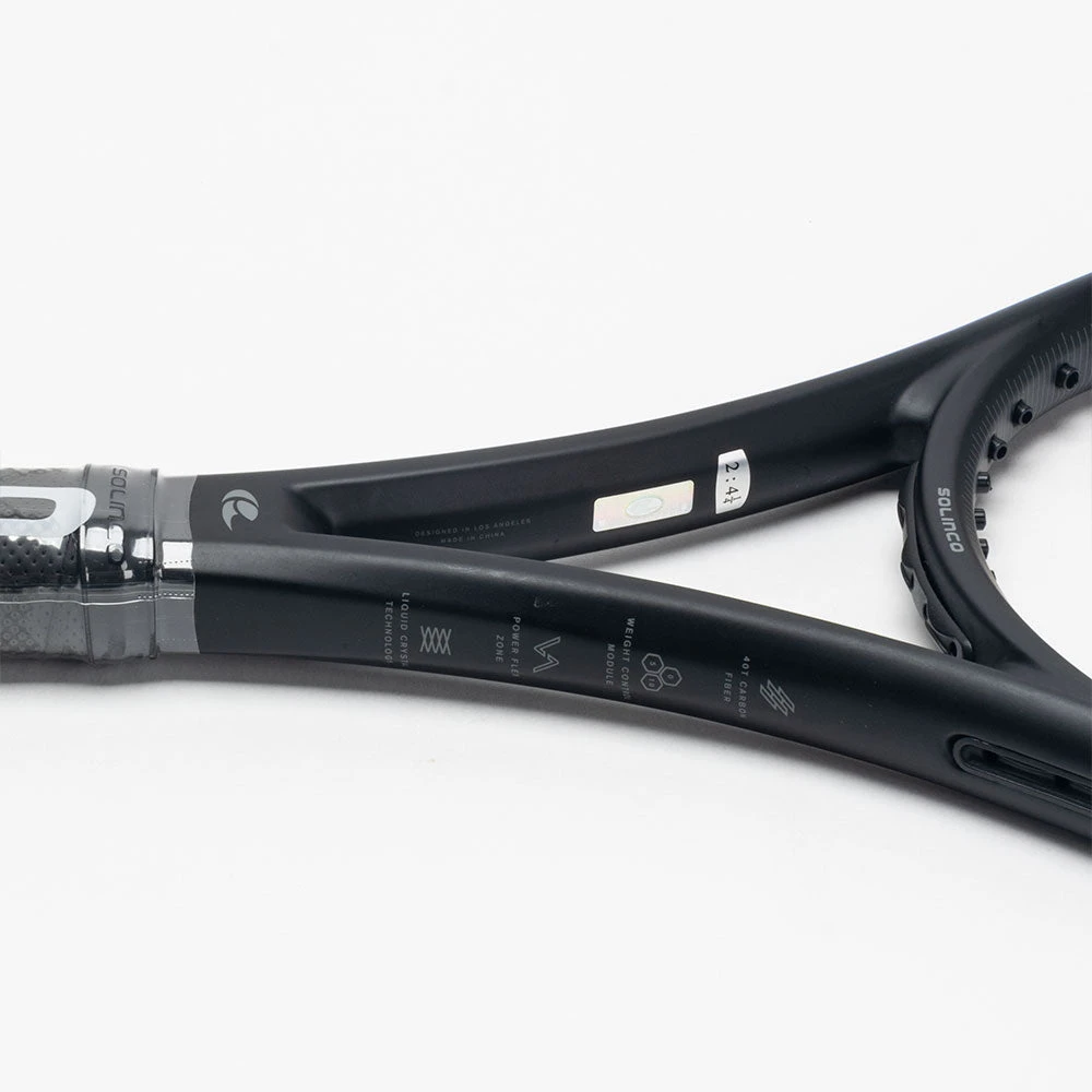 Fast, explosive and powerful, the Solinco Blackout 300 is a dangerous weapon for intermediate and advanced players. This tennis racquet offers easy handling and a solid feel to put away points with authority. Enjoy a plush feel at contact from the Liquid Crystal technology in the layup, which reduces vibrations and eases arm fatigue. The 40T Carbon Fiber technology at the three and nine o’clock positions increase the sweet spot while improving stability. If you’re an aggressive striker who likes to dictate the pace of play, control the court with the Solinco Blackout 300!