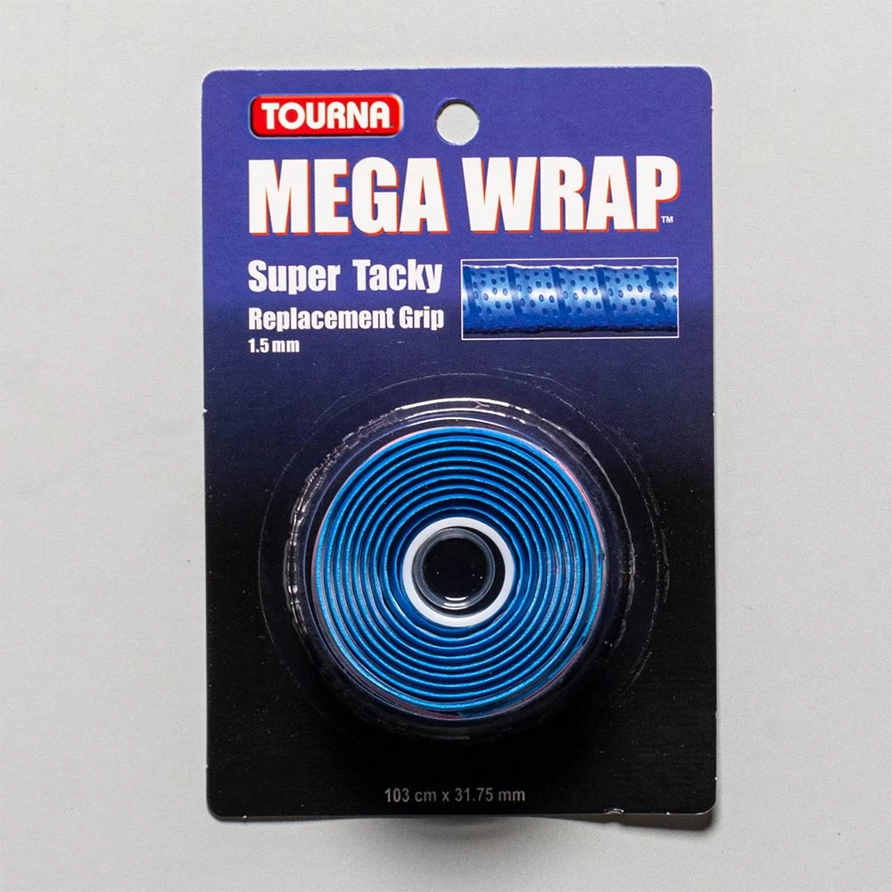 Re-wrap your racquet handle in the long-lasting tac of Tourna Mega Wrap Replacement Grip, especially beneficial for cooler weather play. This replacement grip prevents your racquet from twisting and sliding in your hand. Features a durable, super tacky feel.